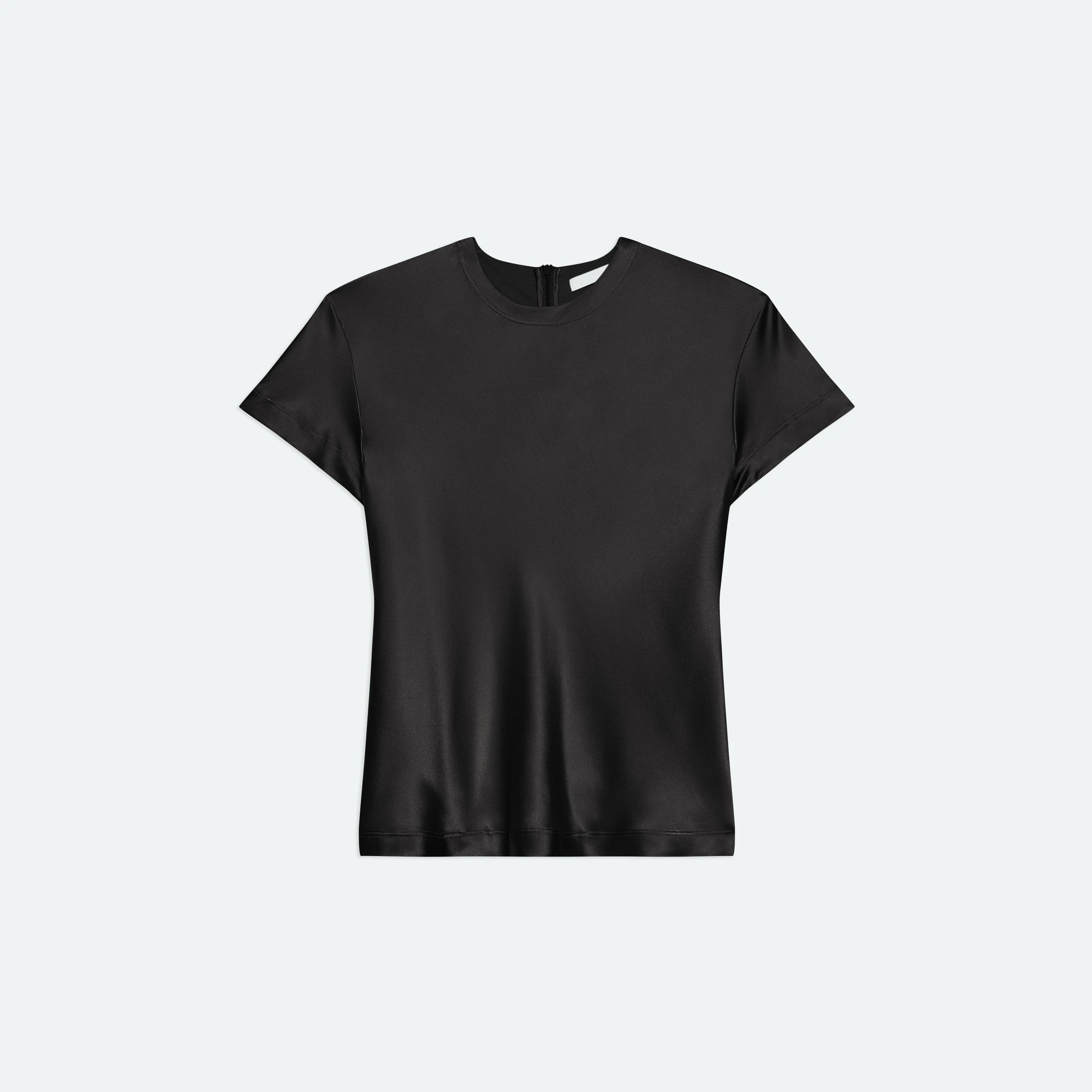 Bias-cut crewneck tee in silk satin. Cut for a slim fit, with waist ties to create a more fitted look. Finished with an invisible zipper at the back. Fits true to size. Model is 5'9" and wears size S. DETAILS - Crewneck - Back zipper closure - Short sleeves - Waist ties - Q01HW508 MATERIALS & CARE - Composition: 100% silk - Professional dry clean only. - Finished Garment Manufacturing Country/Region: China - Fabric Production Country/Region: China - Weaving Country/Region: (of fabric) China - Dyeing Country/Region: (of fabric) China - Finishing Country/Region: (of fabric) China