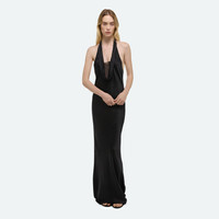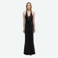 Silk dress with a deep cowl neck and sheer detail. Cut on the bias for a fluid drape. Fits true to size. Model is 5'11" and wears size S. DETAILS - Deep cowl - Halterneck - Bias-cut - Open back - Maxi length - Slim fit - Fully lined with chiffon - P10HW601 MATERIALS & CARE - Composition: 100% silk; lining: 100% recycled polyester - Professional dry clean only. - Fabric Production Country/Region: China - Weaving Country/Region: (of fabric) China - Dyeing Country/Region: (of fabric) China - Finishing Country/Region: (of fabric) China