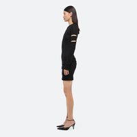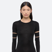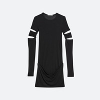 Slim-fit convertible dress in ultra-soft cotton modal rib, featuring stylized slashes and detachable sleeves. Wear as a midi skirt or use the hidden buttons to transform into a mini. Fits true to size. Model is 5’11” and wears size S. DETAILS - Crewneck - Short sleeves with detachable long sleeves panels - Slash detail at bicep - Use hidden buttons to secure skirt at a mini length - O09HW604 MATERIALS & CARE - Composition: 50% Modal, 50% Pima Cotton - Machine wash cold gentle cycle with like colors. Do not bleach. Tumble dry low. Cool iron if needed. Do not dry clean. - Finished Garment Manufacturing Country/Region: Peru - Fabric Production Country/Region: Peru - Weaving Country/Region: (of fabric) Peru - Dyeing Country/Region: (of fabric) Peru - Finishing Country/Region: (of fabric) Peru