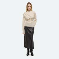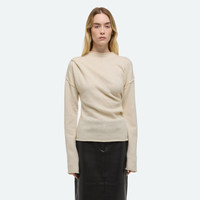 Crewneck sweater made in a plush wool blend. Subtle pleating creates a twisted wrap effect. Fits true to size. Model is 5'11" and wears size S. DETAILS - High crewneck - Dropped shoulder with exposed seams - Rolled neck, cuffs, and hem - Pleats at shoulder and waist - Fitted - P09HW702 MATERIALS & CARE - Composition: 59% merino wool, 28% polyamide, 10% cashmere, 3% elastane - Dry clean with any solvent except trichloroethylene. - Fabric Production Country/Region: Italy - Dyeing Country/Region: (of fabric) Italy - Finishing Country/Region: (of fabric) Italy - Spinning: (of fabric) Italy