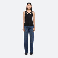 Supersoft cotton-modal tank in an ultra-fine rib, featuring elasticized harness detail at neck and arms. Fits true to size. Model is 5’11” and wears size S. DETAILS - Racerback style - Scoop neck - Y-shaped front strap - Adjustable straps at arms - O09HW503 MATERIALS & CARE - Composition: 50% Modal, 50% Pima Cotton - Machine wash cold gentle cycle with like colors. Do not bleach. Tumble dry low. Cool iron if needed. Do not dry clean. - Finished Garment Manufacturing Country/Region: Peru - Fabric Production Country/Region: Peru - Weaving Country/Region: (of fabric) Peru - Dyeing Country/Region: (of fabric) Peru - Finishing Country/Region: (of fabric) Peru