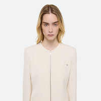 Tailored blazer dress in textured viscose. Adjust the look of the dress with the 2-way front zipper, or unzip fully to wear as a jacket. Fits true to size. Model is 5’10” and wears size 2. DETAILS - Collarless neckline - 2-way zipper front closure - Waist flap pockets and on-seam side pockets - Welt pocket with metal logo clip - Metal-wrapped logo buttons at sleeve - Fully lined - Slim fit - P04HW101 MATERIALS & CARE - Composition: 100% viscose; lining: 100% viscose - Cool iron if needed. Professional dry clean only. - Finished Garment Manufacturing Country/Region: Vietnam - Fabric Production Country/Region: Italy - Weaving Country/Region: (of fabric) Italy - Dyeing Country/Region: (of fabric) Italy - Finishing Country/Region: (of fabric) Italy