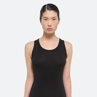 Supersoft Peruvian cotton-modal tank dress in ultra-fine rib. Fits close to the body with a slightly scooped neck. Fits true to size. Model is 5’9” and is wearing size S DETAILS - Scooped neck - Sleeveless style - Soft, compact rib knit - Tonal HL logo embroidered at front - O01HW609 MATERIALS & CARE - Composition: 50% Modal, 50% Pima Cotton - Machine wash cold gentle cycle with like colors. Do not bleach. Tumble dry low. Cool iron if needed. Do not dry clean. - Finished Garment Manufacturing Country/Region: Peru - Fabric Production Country/Region: Peru - Weaving Country/Region: (of fabric) Peru - Dyeing Country/Region: (of fabric) Peru - Finishing Country/Region: (of fabric) Peru