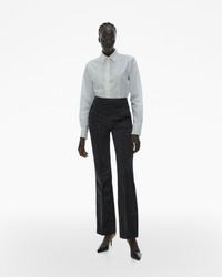 The Helmut Lang Tuxedo Pant is a straight-leg style in shiny satin with a contrasting crepe yoke, pressed front, and side zip closure. DETAILS - 100% Polyester - High-rise - Side zip closure - On-seam pockets - Straight-leg silhouette - Imported - M09HW202 CARE - Professional dry clean only FIT - Fits true to size - Nyaueth is 5’11” and is wearing size 2