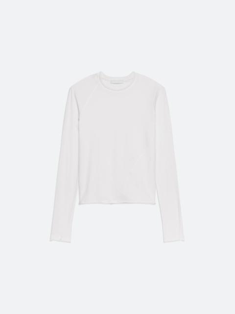 Long-sleeved tee in featherweight jersey. Seams wrap around the body for a close fit. Fits true to size. Model is 5’10” and wears size S. DETAILS - Crewneck - Long sleeves - Tonal logo embroidery at front - Double-rolled hem at neck and arms - P05HW505 MATERIALS & CARE - Composition: 92% Pima cotton, 8% spandex - Machine wash cold gentle cycle, with like colors. Do not bleach. Tumble dry low. Cool iron if needed. Do not dry clean. - Finished Garment Manufacturing Country/Region: Peru - Fabric Production Country/Region: Peru - Weaving Country/Region: (of fabric) Peru - Dyeing Country/Region: (of fabric) Peru - Finishing Country/Region: (of fabric) Peru