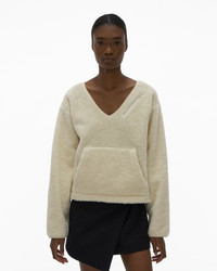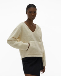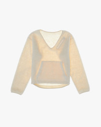 The Helmut Lang V-Neck Fleece Sweater is a V-neck style accented with long sleeves and a pouch pocket. DETAILS - 60% Cotton, 40% Polyester - V-neck - Drop shoulder - Long sleeves - Zip pocket - Pouch pocket - Shirttail hem - Imported - L07HW503 CARE - Machine wash cold with like colors - Do not bleach, tumble dry, iron, or dry clean FIT - Fits true to size - Naki is 5’ 11” and wears a size S