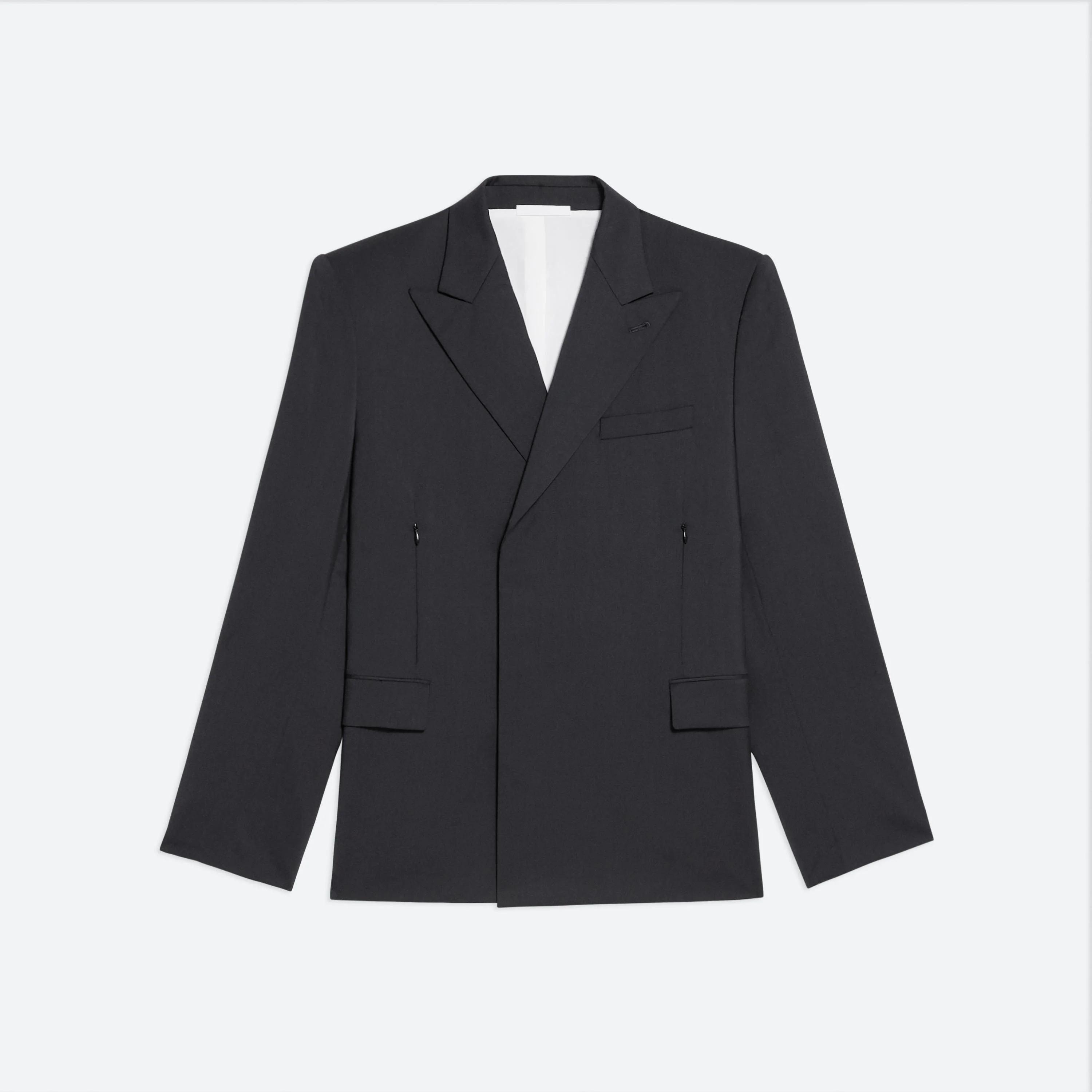 Double-breasted unisex blazer in Italian virgin wool with hidden button closures. Relaxed fit with peak lapels and side zip pockets. This garment was designed with many body types and gender expressions in mind. Male Model is 6’2” and is wearing size M Female Model is 5’9” and is wearing size S DETAILS - Peak lapels - Hidden double-breasted button closures - On-seam zip pockets - Female model is wearing a mens M for an oversized fit - O01HM101 MATERIALS & CARE - Composition: 100% Virgin Wool - Professional dry clean only - Finished Garment Manufacturing Country/Region: China - Fabric Production Country/Region: Italy - Weaving Country/Region: (of fabric) Italy - Dyeing Country/Region: (of fabric) Italy - Finishing Country/Region: (of fabric) Italy