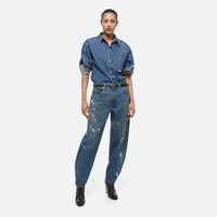 Cropped mid-rise jeans with a loose fit and wide leg. Converts into a tapered leg using two sets of snaps at the ankle. Each pair is finished by hand with paint and oil staining for a one-of-a-kind patina. Fits true to size. Model is 5’9” and is wearing size 26 DETAILS - Mid-rise - Hand-painted detailing - Wide leg buttons to tapered leg - Loose fit - Zip fly with button closure - Classic five-pocket style - Belt loops - Riveted metal logo plate at back - 100% cotton denim - O05DW202 MATERIALS & CARE - Composition: 100% Cotton - Finished Garment Manufacturing Country/Region: China - Fabric Production Country/Region: Italy - Weaving Country/Region: (of fabric) Italy - Dyeing Country/Region: (of fabric) Italy - Finishing Country/Region: (of fabric) Italy