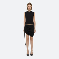 Draped skirt in soft lyocell jersey. Control the length of the skirt with our signature seatbelt strap to create an asymmetrical mini. Matches the Wind Harness Top. Fits true to size. Model is 5’10” and wears size S. DETAILS - Hidden elastic waist - Tonal elastic seatbelt at left - Ruched detail and D-ring anchor at right - P01HW301 MATERIALS & CARE - Composition: 94% lyocell, 6% elastane - Machine wash cold, gentle cycle, with similar colors, do not bleach, lay flat to dry in shade, do not tumble dry, cool iron if needed, do not dry clean - Finished Garment Manufacturing Country/Region: China - Fabric Production Country/Region: Portugal - Weaving Country/Region: (of fabric) Portugal - Dyeing Country/Region: (of fabric) Portugal - Finishing Country/Region: (of fabric) Portugal