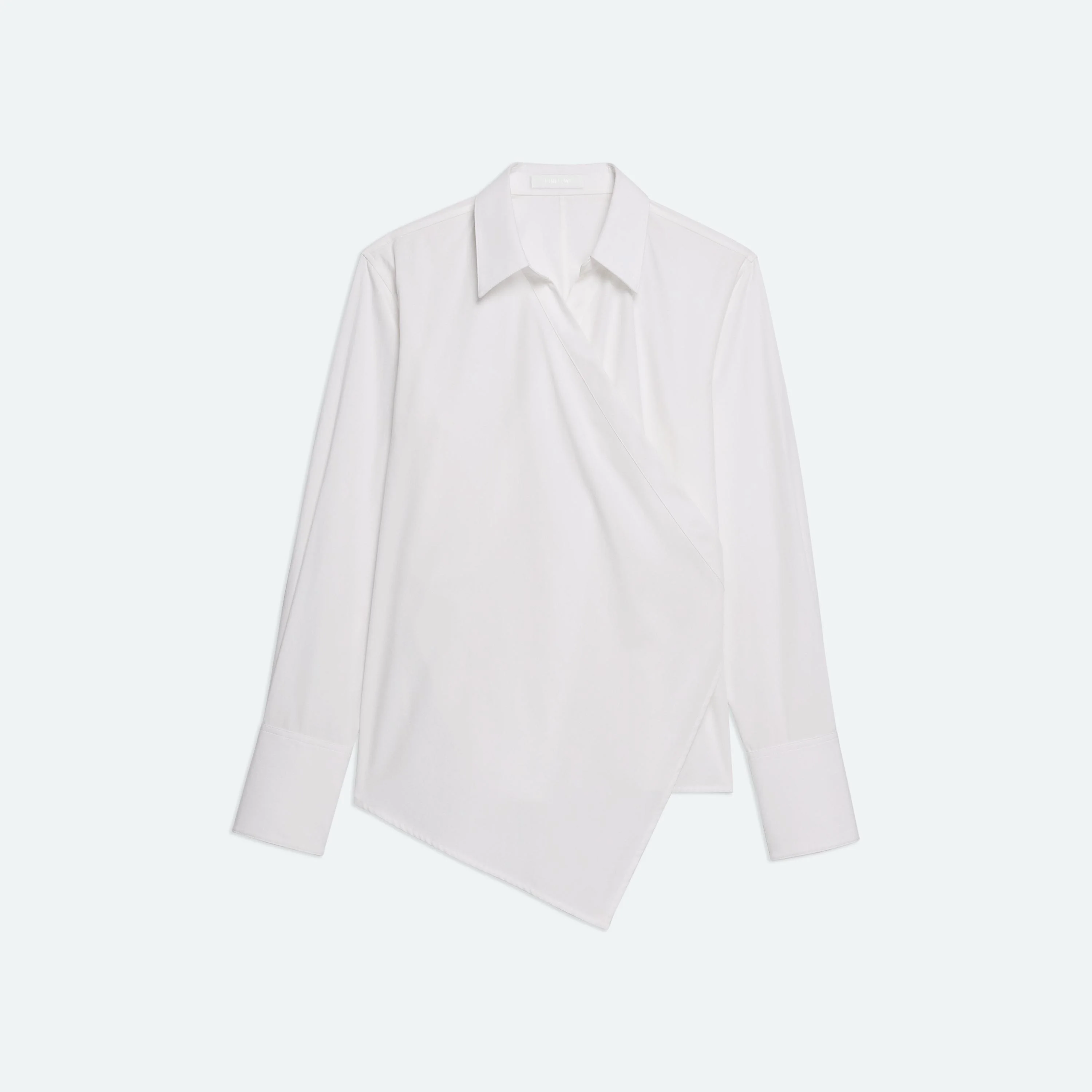 Wrap-front shirt in cotton poplin. Adjust the depth of the wrap to control the drape. Fits true to size. Model is 5'11" and wears size S. DETAILS - Pointed collar - Buttons at side and collar for adjustable fit - Tuxedo cuffs - Slim fit - P07HW504 MATERIALS & CARE - Composition: 100% cotton - Professional dry clean only. - Finished Garment Manufacturing Country/Region: China - Fabric Production Country/Region: Japan - Weaving Country/Region: (of fabric) Japan - Dyeing Country/Region: (of fabric) Japan - Finishing Country/Region: (of fabric) Japan
