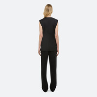 Tailored vest in virgin Italian wool suiting with full-length 2-way front zipper. Fits true to size. Model is 5’10” and wears size 2. DETAILS - Collarless neckline - 2-way zipper front closure - Waist flap pockets and on-seam side pockets - Welt pocket with metal logo clip - Fully lined - Hits at high hip - P04HW102 MATERIALS & CARE - Composition: 100% wool; lining: 100% viscose - Do not wash. Do not bleach. Do not tumble dry. Cool iron if needed. Professional dry clean with petroleum solvent only. - Finished Garment Manufacturing Country/Region: China - Fabric Production Country/Region: China - Weaving Country/Region: (of fabric) China - Dyeing Country/Region: (of fabric) China - Finishing Country/Region: (of fabric) China