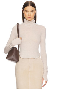 - 99% cashmere 1% nylon - Made in China - Dry clean only - Turtleneck styling - Thumbhole design - Lightweight knit fabric with dolphin hem - Revolve Style No. HLSA-WK9 - Manufacturer Style No. HEK21 F22
