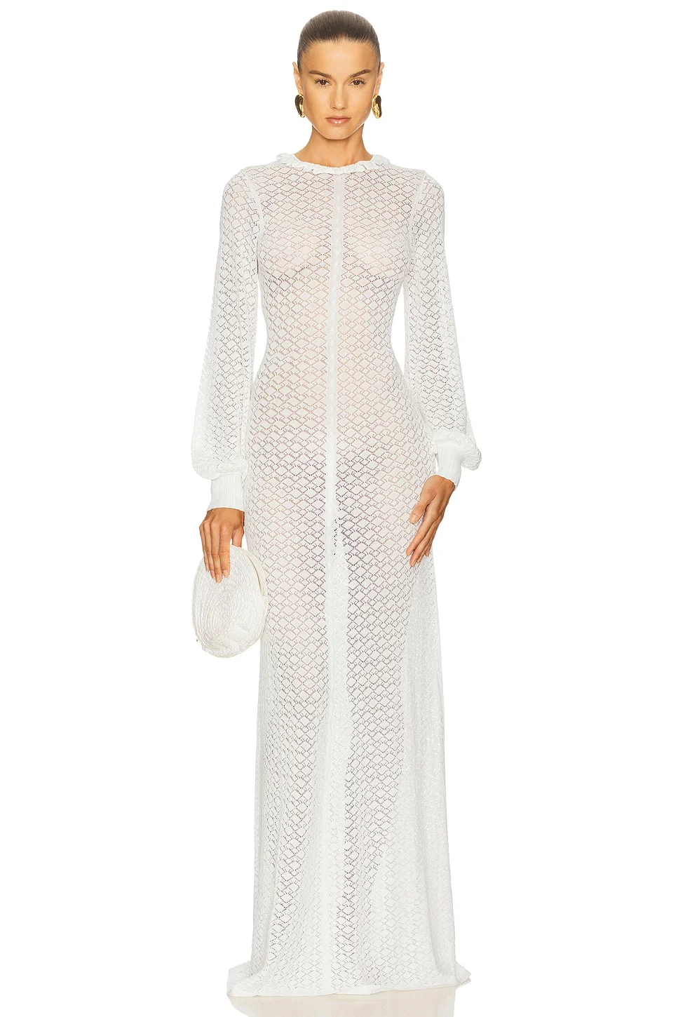 - 80% viscose 20% nylon - Dry clean - Unlined - Hidden back button closure - Ruffle detail at collar - Lightweight knit fabric - Garment is made with a semi-sheer fabric, undergarments can show through - Revolve Style No. HLSA-WD225 - Manufacturer Style No. HED10015 U25