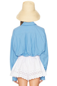 Details - Self: 63% nylon, 37% cotton - Lining: 100% cotton - Hand wash - Pull-on styling with front button closures - Breast pouch pocket - Buttoned cuffs - Cropped fit with elasticized waist - Taffeta fabric with bubble hem - Made in China - Our Style No. HLSA-WS194 - Manufacturer Style No. HES10002 U25
