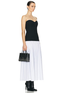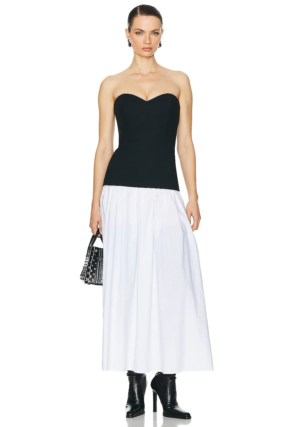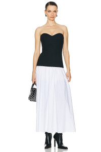Details - Self: 69% cotton, 28% nylon, 3% elastane - Lining & Contrast Fabric: 100% cotton - Made in China - Hand wash - Unlined - Hidden back zipper closure - Halterneck styling with button closure - Sweetheart neckline with non-slip silicone lining - Ponte knit bodice with pleated poplin skirt - Our Style No. HLSA-WD69 - Manufacturer Style No. HED67 S24