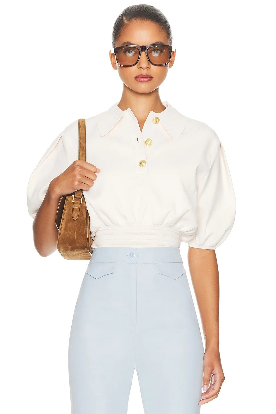 Details - 66% viscose, 16% nylon, 14% polyester, 4% elastane - Hand wash - Front partial button closure - Puffy-sleeve design - Cropped fit - Heavyweight knit fabric - Made in China - Our Style No. HLSA-WS206 - Manufacturer Style No. HES10024 F25