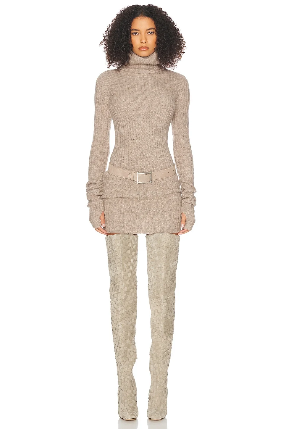 Details - 35% polyester, 33% alpaca, 32% wool - Made in China - Dry clean only - Unlined - Pull-on styling - Turtleneck design - Ribbed knit fabric with thumb-hole accent - Our Style No. HLSA-WD135 - Manufacturer Style No. HED108 H24