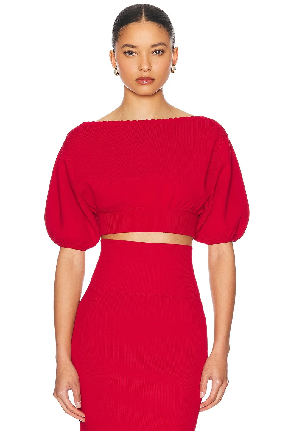 Details - 71% viscose, 15% elastane, 14% polyester - Hand wash - Pull-on styling - Puffy-sleeve design - Cropped fit - Midweight knit fabric - Item not sold as a set - Made in China - Our Style No. HLSA-WS179 - Manufacturer Style No. HEK72 U25