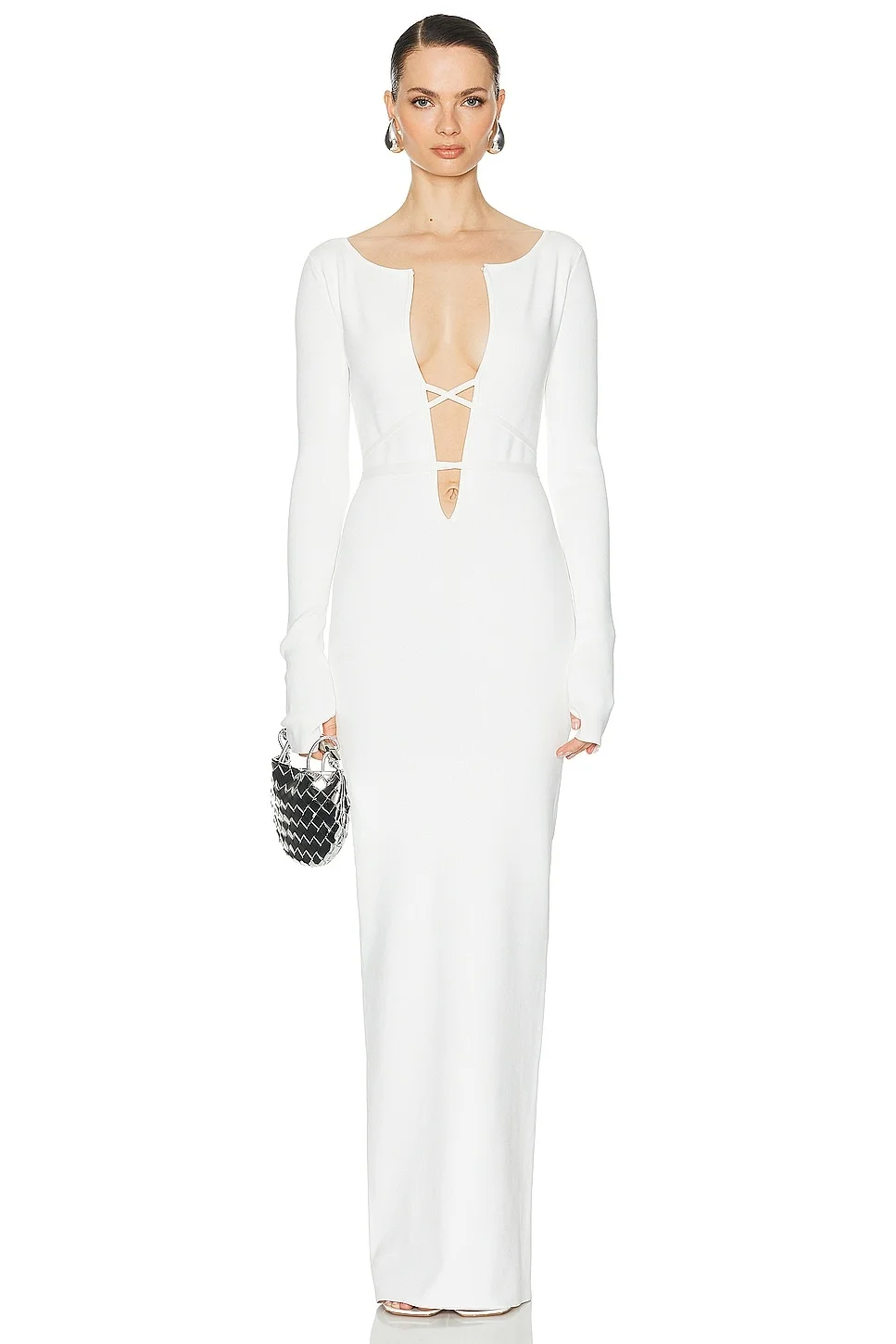 Details - 72% viscose, 15% polyester, 10% nylon, 3% elastane - Made in China - Hand wash - Unlined - Pull-on styling - Plunging neckline with hook and eye closure and lace-up tie detail - Thumbhole cut-out - Midweight slinky ribbed knit fabric - Our Style No. HLSA-WD74 - Manufacturer Style No. HED62 S24