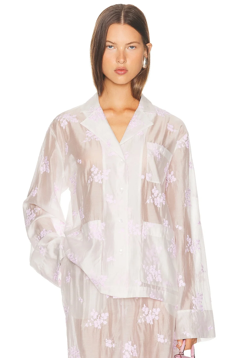 Details - 85% lyocell, 15% polyester - Hand wash - Front button closure - 3-front pouch pockets - Buttoned cuffs - Voile fabric with pink floral embroidered detail throughout - Garment is intentionally sheer, undergarments will show through. - Please note undergarment not included - Item not sold as a set - Made in China - Our Style No. HLSA-WS193 - Manufacturer Style No. HES10004 U25