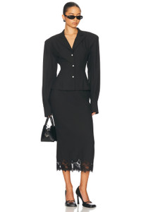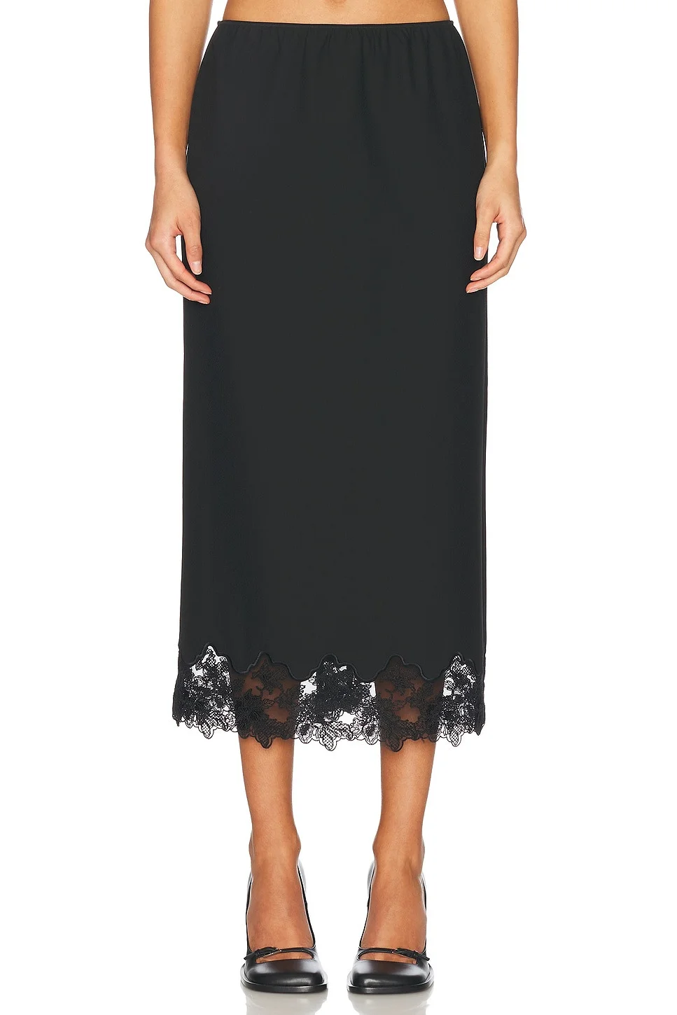 Details - 62% polyester, 34% viscose, 4% elastane - Made in China - Dry clean only - Unlined - Pull-on styling with elastic waistband - Crepe fabric with lace trim and back vent - Our Style No. HLSA-WQ76 - Manufacturer Style No. HEQ63 H24