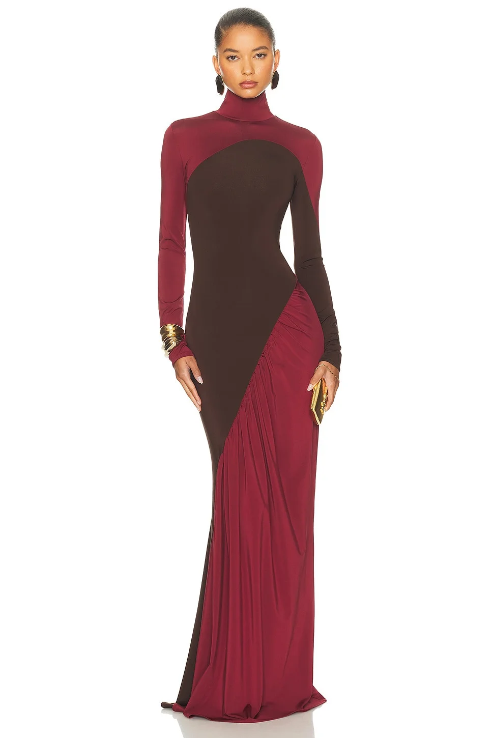 Details - 92% viscose, 8% elastane - Dry clean only - Unlined - Hidden back zipper closure - Mockneck design - Slinky jersey fabric - Made in China - Our Style No. HLSA-WD244 - Manufacturer Style No. HED10030 F25