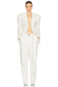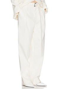 - 58% nylon 39% cotton 3% elastane - Made in China - Dry clean only - Button fly with hook and eye closure.4-pocket styling - Front pressed pleat design - Crepe fabric.19" at the knee narrows to 17" at the leg opening - Revolve Style No. HLSA-WP55 - Manufacturer Style No. HEP36 F24