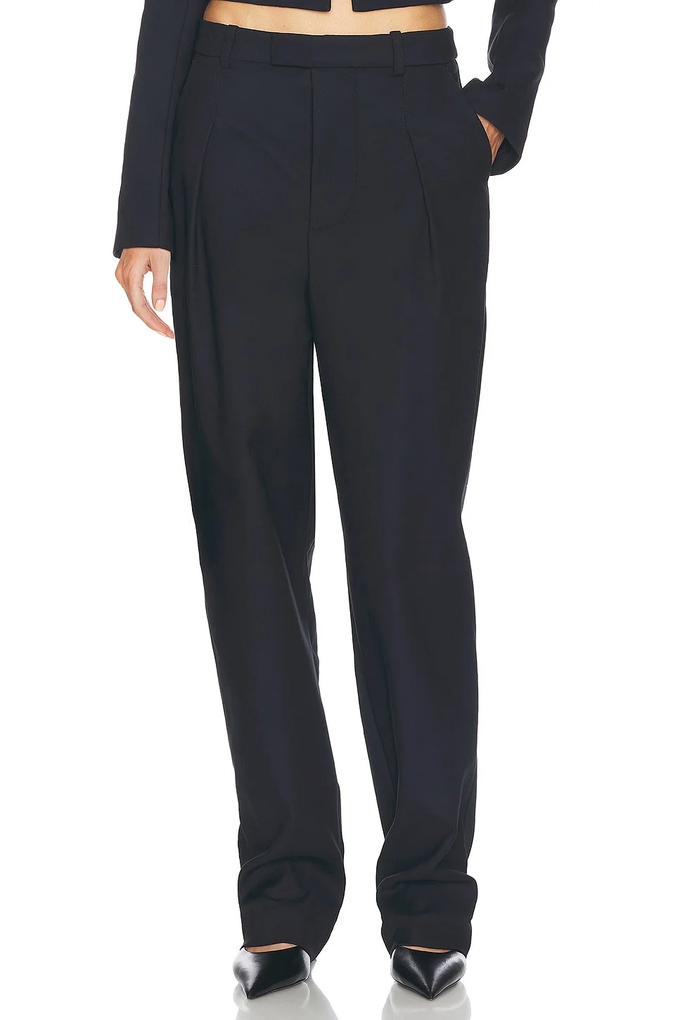 Details - 58% nylon, 39% cotton, 3% elastane - Made in China - Dry clean only - Button fly with hook and eye closure - 4-pocket styling - Front pressed pleat design - Crepe fabric - Our Style No. HLSA-WP54 - Manufacturer Style No. HEP36 F24