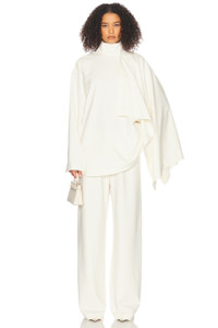 Details - 65% polyester, 24% viscose, 9% wool, 2% elastane - Made in China - Dry clean only - Shoulder button closure - Detachable scarf design - Mockneck design - Side slit pockets - Twill fabric - Our Style No. HLSA-WS149 - Manufacturer Style No. HES108 H24