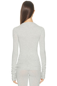 Details - 63% cotton, 27% lyocell, 10% elastane - Made in China - Hand wash cold or dry clean - Pull-on styling - Straight neckline - Extra long sleeves - Lightweight material - Our Style No. HLSA-WS214 - Manufacturer Style No. HES10029 H25