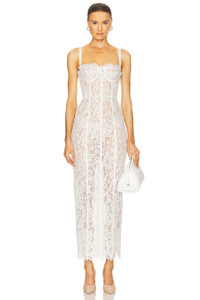 - Self: 55% cotton 24% nylon 21% viscose Lining: 100% polyester - Made in China - Hand wash - Unlined - Hidden back zipper closure - Adjustable shoulder straps - Bustier design Garment is intentionally sheer, undergarments will show through - Revolve Style No. HLSA-WD127 - Manufacturer Style No. HED120 H24