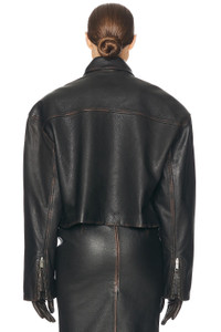 Details - Self: 100% cow leather - Lining: 100% polyester - Made in India - Professional leather cleaning only - Hidden front zipper closure - Button closure at collar - breast and cuff zipper pockets - Side seam pockets - Genuine leather - Our Style No. HLSA-WO49 - Manufacturer Style No. HEOW51 H24