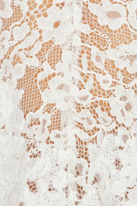 - Self 1: 60% naia™ acetate 40% recycled polyester Self 2: 55% cotton 24% nylon 21% viscose Self 3: 89% polyester 11% elastane Lining: 100% nylon - Dry clean only - Partially lined - Back hook and eye clasp closure Hidden back zipper closure - Sleeveless design with attached lace overlay at shoulders - Crepe fabric at skirt with back vent - Revolve Style No. HLSA-WD214 - Manufacturer Style No. HED10010 U25