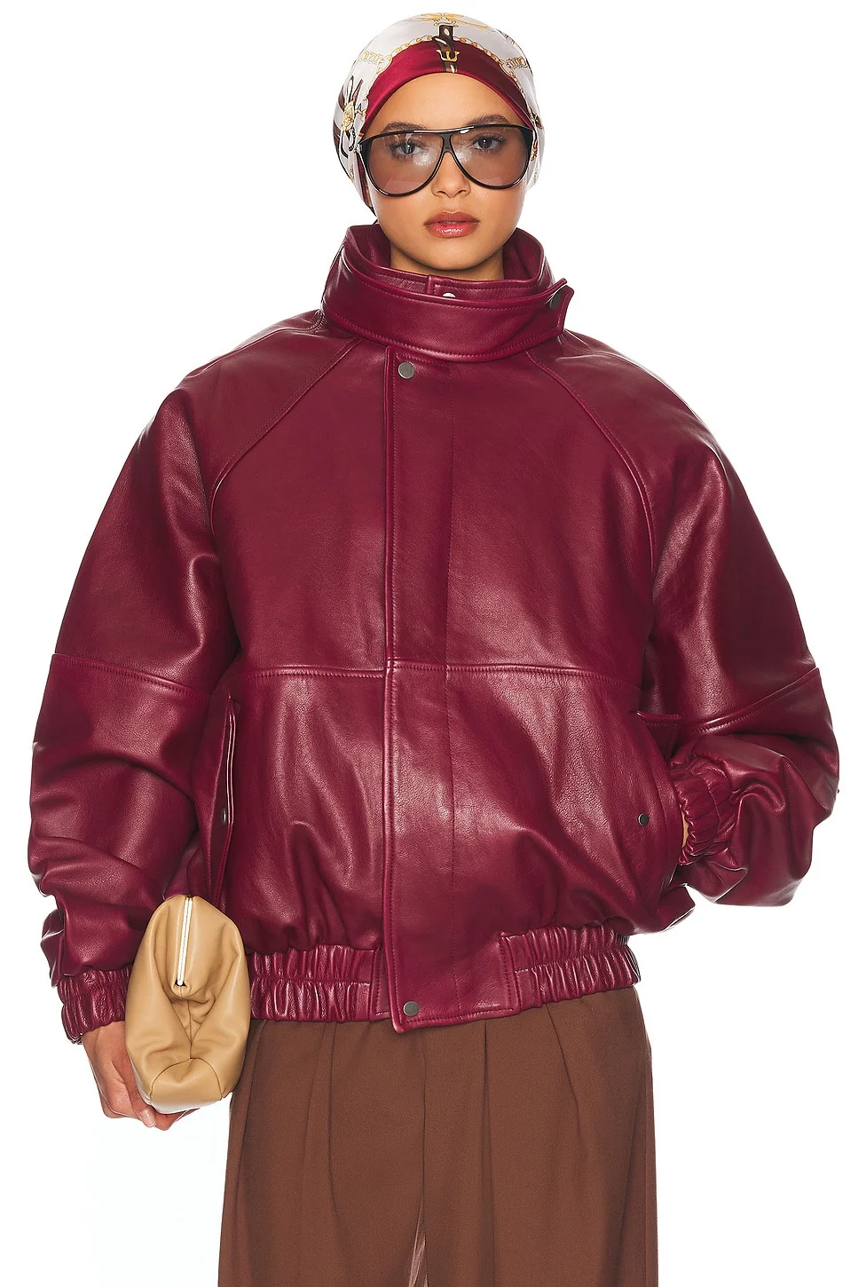 Details - Self: 100% leather - Lining: 100% viscose - Professional leather cleaning only - Hidden front zipper closure - Button snap closure at collar - Stand collar - Side flap pockets with button snap closure - Elastic stretch at cuffs and hem - Genuine leather - Made in India - Our Style No. HLSA-WO59 - Manufacturer Style No. HEOW57 U25