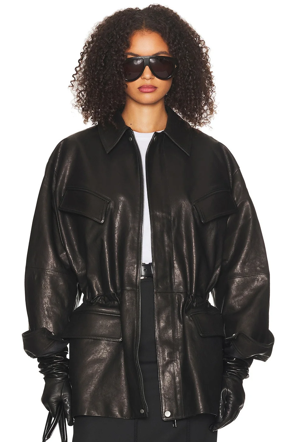 Details - Self: 100% lamb leather - Lining: 55% polyester, 45% viscose - Professional leather cleaning only - Hidden front zipper closure - 4-front flap pockets - Buttoned cuffs - Cinched design at waist - Genuine leather with storm flap at back - Made in South Korea - Our Style No. HLSA-WO69 - Manufacturer Style No. HEOW10001 F25