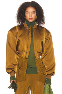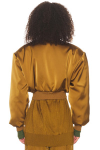 Details - 100% polyester - Hand wash - Hidden front zipper closure - Heavy padding at shoulders - Side flap pockets with button closures - Cropped fit - Satin fabric with padding and ribbed knit trim - Made in China - Our Style No. HLSA-WO62 - Manufacturer Style No. HEOW10009 F25