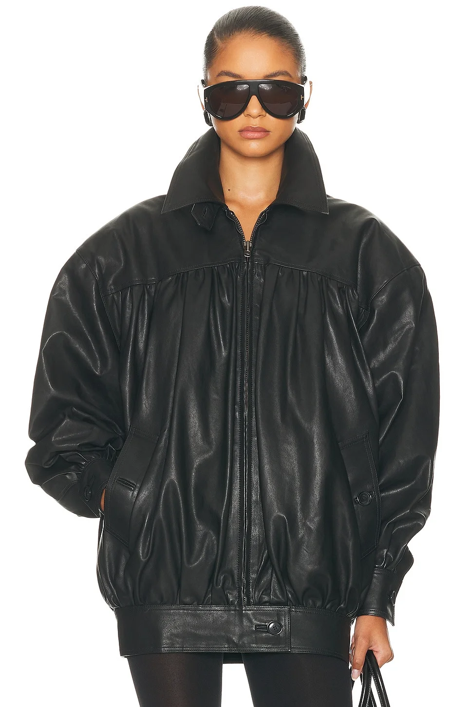 Details - Leather textile - Professional leather clean only - Front zipper closure - Side slant pockets with button details - Midweight leather fabric - Made in India - Our Style No. HLSA-WO72 - Manufacturer Style No. HEOW10002 F25