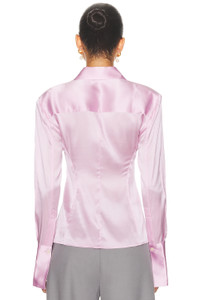 Details - 92% silk, 8% elastane - Dry clean only - Front button closure - Buttoned cuffs - Satin fabric - Made in China - Our Style No. HLSA-WS210 - Manufacturer Style No. HES10016 F25