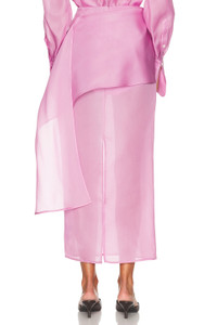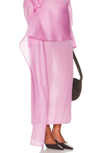 Details - 100% silk - Dry clean only - Unlined - Hidden back zipper closure - Organza fabric with back vent and overlay draped fabric accent - Garment is made with a semi-sheer fabric, undergarments can show through - Item not sold as a set - Made in China - Our Style No. HLSA-WQ82 - Manufacturer Style No. HEQ10005 F25