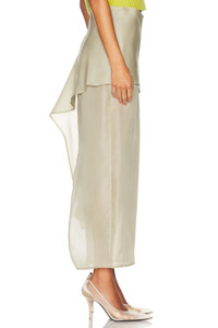 Details - 100% silk - Dry clean only - Unlined - Hidden back zipper closure - Organza fabric with back vent and overlay draped fabric accent - Garment is made with a semi-sheer fabric, undergarments can show through - Item not sold as a set - Made in China - Our Style No. HLSA-WQ83 - Manufacturer Style No. HEQ10005 F25