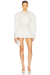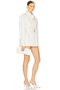- Self: 67% naia™ acetate 23% viscose 10% wool Lining: 100% polyester - Dry clean only - Hidden front button closure - Structured padding at shoulders.4-front flap pockets - Tonal belt - Belted cuffs - Twill fabric - Revolve Style No. HLSA-WO58 - Manufacturer Style No. HEOW60 U25
