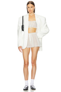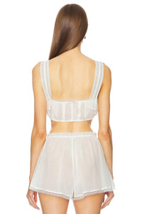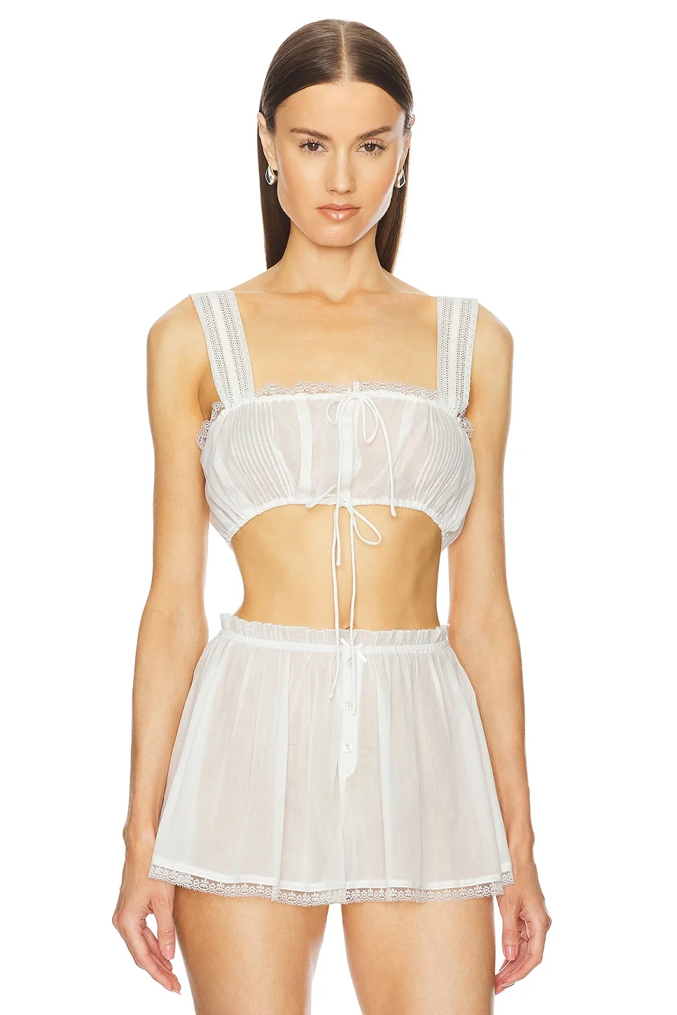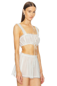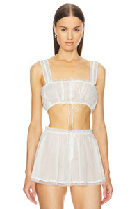 - 100% cotton - Made in China - Hand wash - Adjustable drawstring front - Voile fabric with lace trim and front pintuck - Garment is made with a semi-sheer fabric, undergarments can show through - Item not sold as a set - Revolve Style No. HLSA-WS120 - Manufacturer Style No. HES90 U24