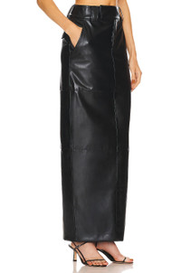 - Self: 100% waterborne polyurethane Back: 33% polyester 30% cotton 7% elastane Lining: 55% polyester 45% rayon - Made in China - Spot clean - Fully lined - Zip fly with button and hook and bar closure - Side slant pockets and back flap pocket with button closure - Faux leather - Skirt measure approx 42.5" in length - Revolve Style No. HLSA-WQ9 - Manufacturer Style No. HEQ5 F22