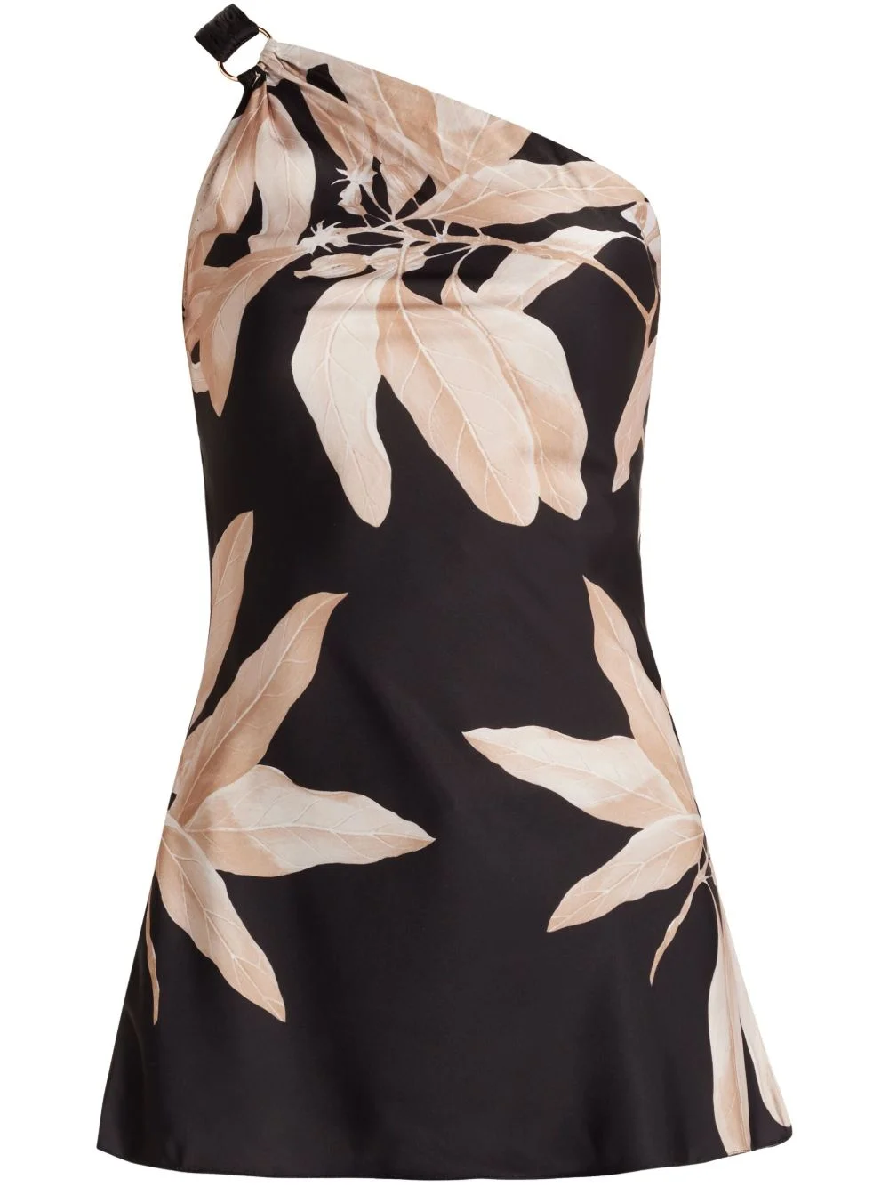 floral-print top Highlights - Black - One-shoulder - Attached scarf - Sleeveless - Straight hem Imported Composition Polyester 96%, Lycra 4% Washing instructions Dry Clean Only