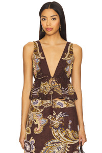 - Shell & Lining: 100% cotton - Dry clean only - Lined at cups - Front tie closure - Plunging v-neck - Cropped styling - Midweight linen fabric with eyelet detailing throughout and ruffled hem - Item not sold as set - Revolve Style No. BENE-WS158 - Manufacturer Style No. HN-REEM-6064