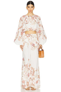 - 55% linen 45% cotton - Dry clean only - Front drawstring tie closure - Elasticized waistband - Side seam pockets - Midweight floral linen fabric - Item not sold as a set.24" at the knee and 24" at the leg opening - Revolve Style No. BENE-WP42 - Manufacturer Style No. HN-DIZA-6060