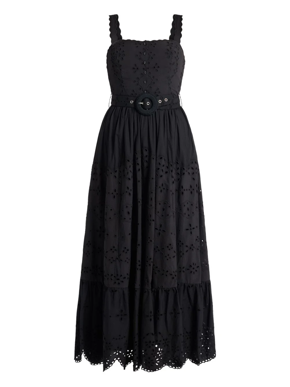Raga scalloped-edge maxi dress Highlights - Black - Scalloped trim - Button fastening - Tiered skirt - Belt Imported Composition Cotton 100% Washing instructions Read Manufacturer Guidelines