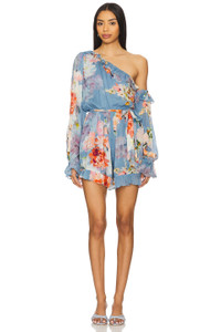 - Self & Lining: 100% viscose - Dry clean only - Hidden side zip closure - One shoulder styling - Detachable belt with tie closure - Side seam pockets and ruffle trim - Midweight floral crepe fabric - Revolve Style No. BENE-WR31 - Manufacturer Style No. HN-SABA-5470