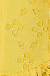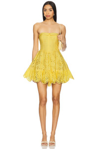 - 100% cotton - Made in India - Dry clean only - Fully lined - Hidden side zip closure - Strapless design with nonstick silicone trim - Midweight eyelet fabric - Neckline to hem measures approx 23" in length - Revolve Style No. BENE-WD374 - Manufacturer Style No. HN-ADYA-YLW-5771