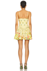 - Self: 96% cotton 4% lycra Lining: 100% cotton - Dry clean only - Partially lined - Hidden back zip closure - Adjustable shoulder straps - Pleated skirt - Midweight floral poplin fabric - Revolve Style No. BENE-WD398 - Manufacturer Style No. HN-DHUN-6044